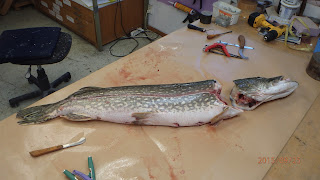 gäddan ska monteras på sköld så jag läggere snittet på baksidan o separerar huvudet från kroppen